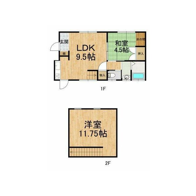 | 間取り(内訳) | 2DK(DK9.5、和4.5、洋11.7) | 建物面積 | 66.04㎡ |