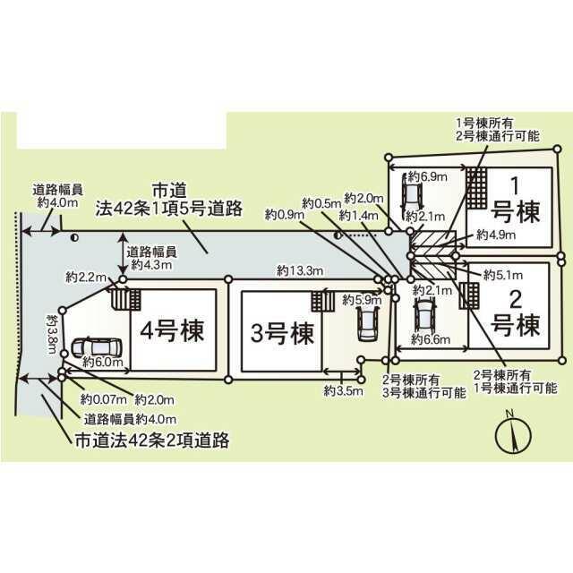 | 用途地域 | 1種住居 | 接道状況 | 北4.3m 私道 接面13.3m 位置指定あり |